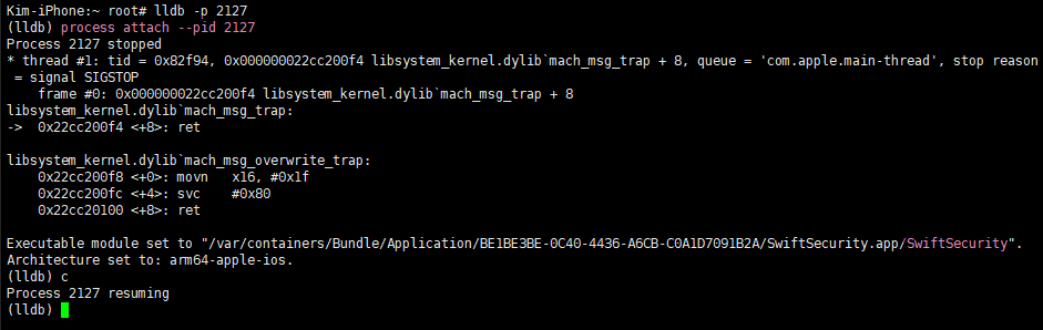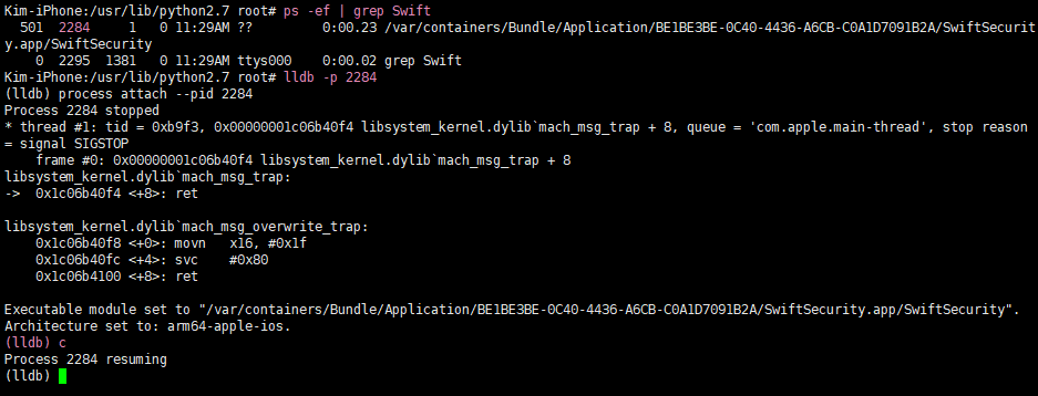 2) frida로 스크립트 실행 후 lldb로 디버깅한다.