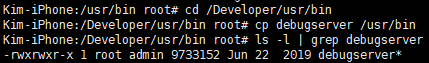 1) /Developer/usr/bin 경로에 있는 debugserver를 /usr/bin으로 복사