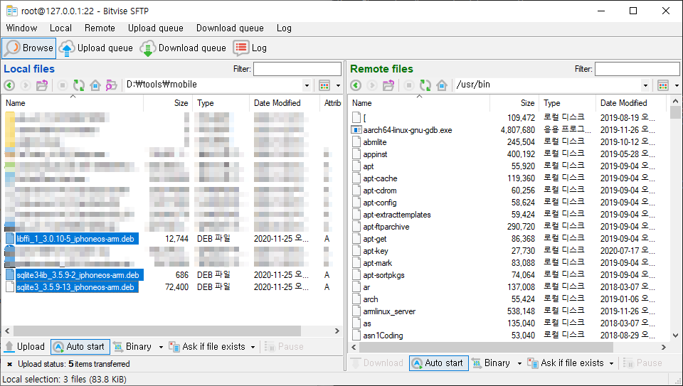 - deb 파일을 Bitvise SFTP를 이용하여 /usr/bin 경로에 넣어준다.