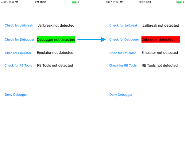 이제 lldb로 디버깅 중일때도 'Debugger not detected'가 되도록 우회를 해볼 것이다.