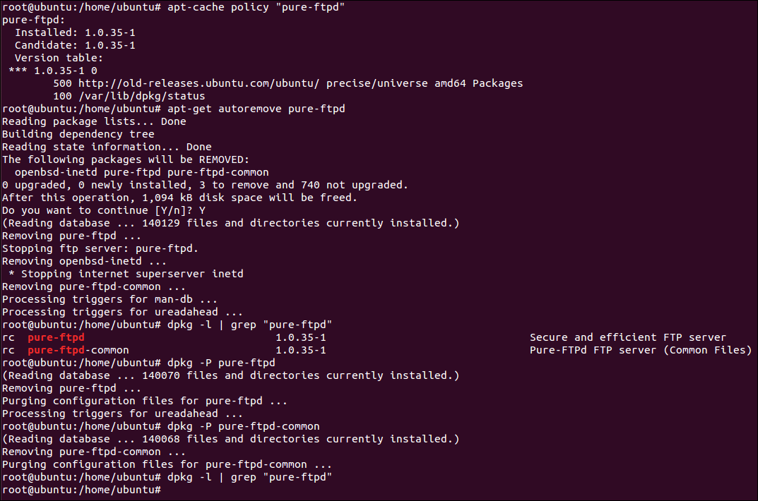 4) pure-ftpd 패키지 완전 제거 (설정파일까지)